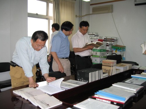 6月20日,由教育部社科司副司长袁振国带队,教育部领导同志一行6人,对中国人民大学13个重点研究基地建设情况进行了检查。在上午的基地建设情况汇报会议上,冯惠玲副校长汇报了学校基地建设的总体情况,各基地主任也就各基地的发展情况分别进行了汇报。其后,检查组在学校领导陪同下对各基地进行了实地考察。在对清史所重点研究基地的实地考察中,检查组对清史所近年来出版的科研成果表示出极大兴趣。