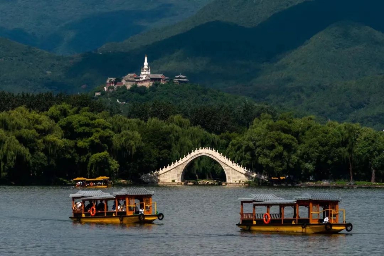 当年乾隆皇帝或许不知,除去杭州西湖,全国尚有众多拱桥冠以“玉带”之名,如大名府漆河、开封、成都、福州、贵阳龙井、黎平、锦屏、台州灵江、苏州长洲、昆山、松江府华亭县、荆溪、金华、汉阴等地都建有“玉带桥”,其中台州灵江的“玉带桥”桥洞有十八之多。其形象大多类似北京常见的五孔桥一类的造型。即使皇家苑囿中的大型桥体也没有突破这类常规形式。清漪园“玉带桥”便是在这一基础上的提炼升华,而“玉带”诗意想象则是催化剂。