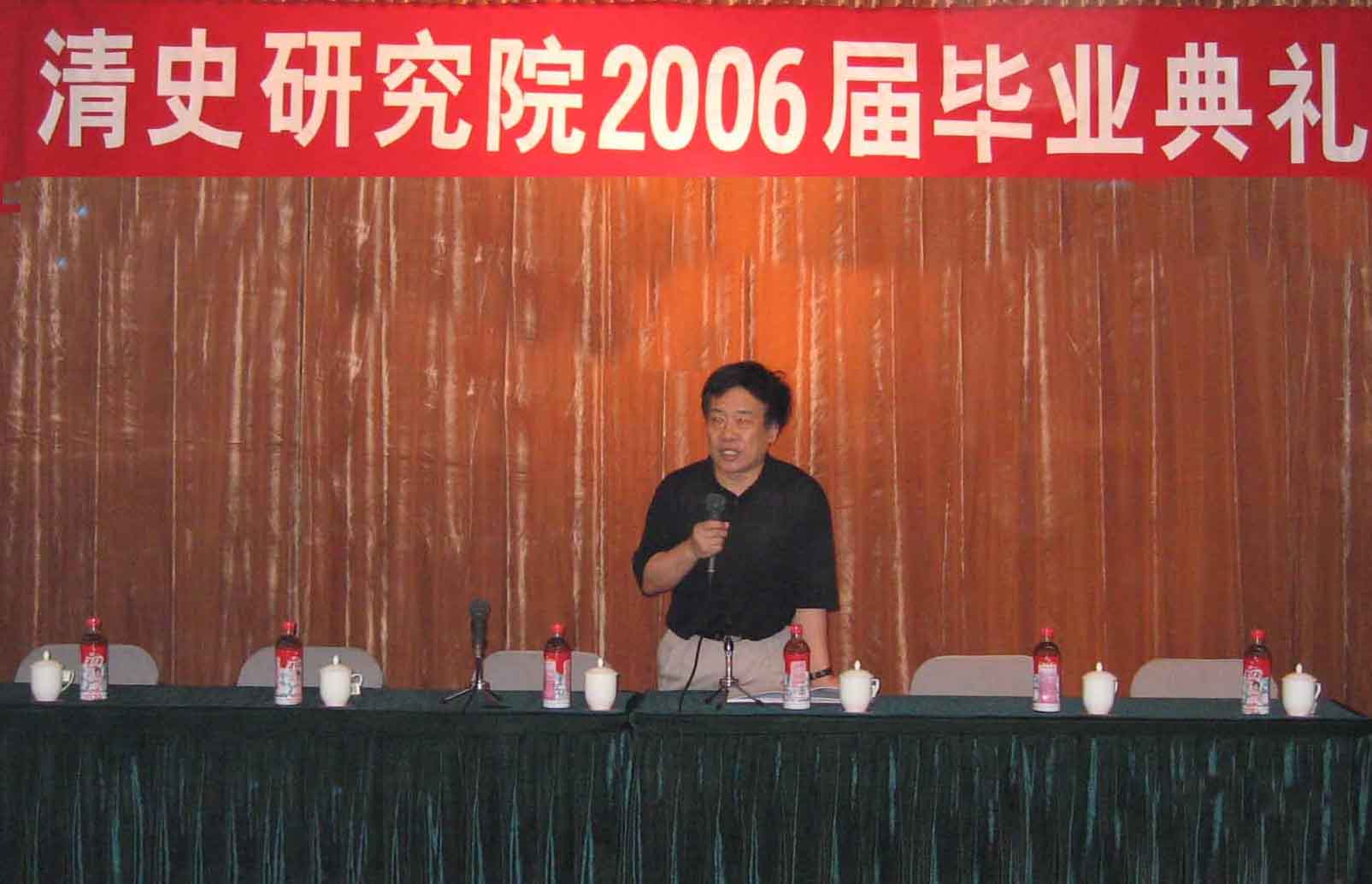 成崇德所长首先代表清史所全体老师向06届毕业生致词,对于他(她)们在校期间所取得的成绩表示充分肯定。成所长希望各位毕业生同学能够记取李文海老师的谆谆教诲,在新的工作岗位上“诚信、勤奋、步履适当”,早日成为服务于社会的有用之才。