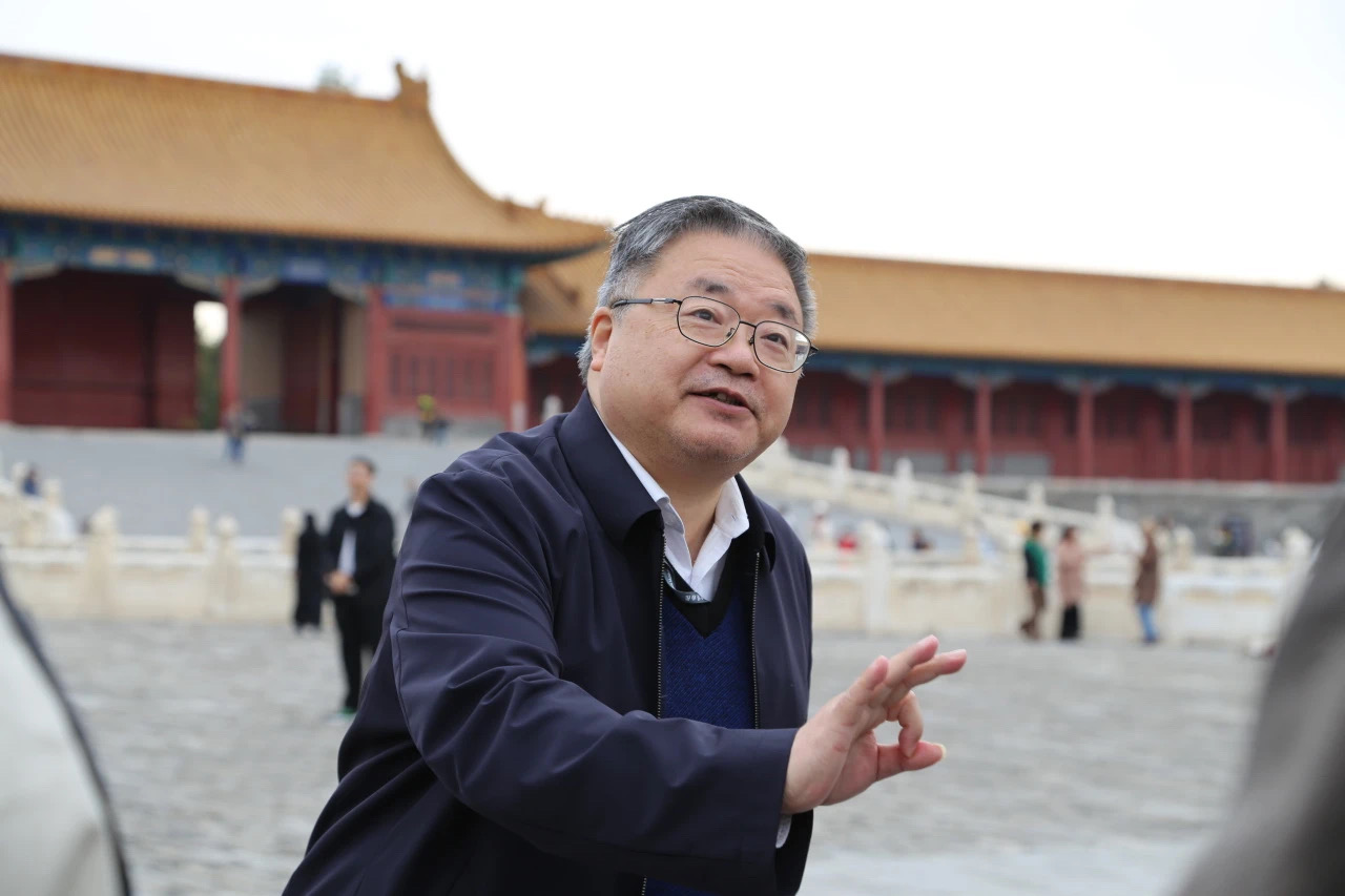 师生面前的太和门为故宫前朝正门,上覆重檐歇山顶,下为汉白玉基座,是明代皇帝早朝御门听政的场所。清顺治帝入主北京后更名为太和门,并在此门颁大赦令。而太和门东侧的协和门外,则留有清代内阁旧址,包括保存档案文书的内阁大库。清代档案史中为人熟知的“八千麻袋”事件便肇始于此。