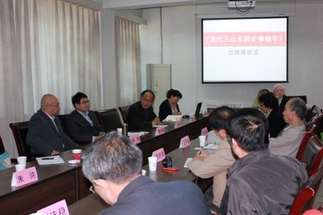 2015年10月28日,我所何瑜教授主编的《清代三山五园史事编年》出版座谈会在中国人民大学召开。会议由中国人民大学清史所清代皇家园林研究中心与中国大百科全书出版社合办。该书主编何瑜教授以及大百科全书出版社学术部主任郭银星出席会议。会议邀请的专家有:海淀区原政协主席、北京圆明园学会副会长张宝章,北京圆明园学会会长、清华大学教授郭黛姮,中国人民大学清史所教授王道成,国家清史编委会委员、北京大学教授王晓秋,北京圆明园学会副会长、北京大学教授岳升阳,中国圆明园学会副会长、北京师范大学教授王开玺,三山五园研究院副院长、北京联合大学教授赵连稳,中国第一历史档案馆副馆长、研究员李国荣,《故宫博物院院刊》编审赵中男。会议还邀请了清代皇家园林研究中心合作单位的相关专家学者,主要有北京市海淀区文化发展促进中心副主任张东旭,圆明园管理处主任李博、副主任王猛,圆明园研究室主任张超、研究人员尤李,颐和园学会秘书长翟小菊,香山公园副园长袁长平。参会的还有清史所常务副所长朱浒教授以及清代皇家园林研究中心的副主任董建中和阚红柳两位老师。