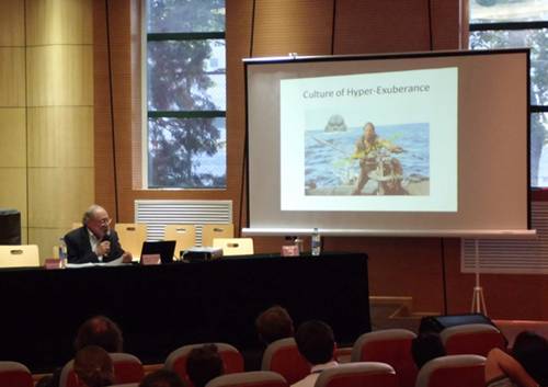 美国著名环境史学家唐纳德·沃斯特教授为大会做了题为“脆弱时代”的主题演讲。他着重指出,世界各地的环境问题已经向人类发出警示,我们的时代正是一个充斥着脆弱感的时代,只有力图改变人类追求满足的方式,才是世界各国回避冲突、应对灾难的最佳途径。在这一过程中,历史学家应扮演重要角色,他们可以为历史上气候与社会之间如何相互影响,过去人们试图阻止或适应旱涝的方式,哪些可行,哪些无效,又延续多少时间等问题提供深邃的见解;也可以学习讲述那些当人类在满足的可能性变得艰难或者消失的时候,如何争取实现需要的有趣故事;也可以从更深沉的角度帮助探讨人类的天性,即便人类的需要就其本质而言是持续不断的,但是却可以找到不同的满足方式,其中一些方式为人们所遗忘,还有一些尚未被实践。虽然出于需要的压力,人类总是在制造灾难,他们同时也一直在自然的循环中,追求永续的和谐。