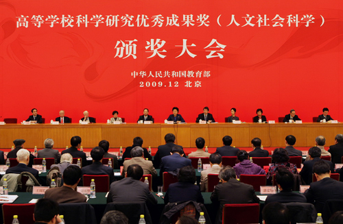 20091230,教育部第五届高校科学研究优秀成果奖(人文社会科学)颁奖大会在人民大会堂隆重召开,中共中央政治局委员、国务委员刘延东等出席颁奖大会并讲话。