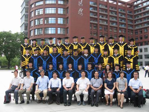 联欢会后,毕业生与老师们在明德楼前合影留念。