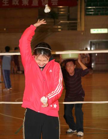 此次比赛设置男单和女单两个项目。上午八点半,在筹备组的有序组织下,比赛正式开始。参赛选手个个摩拳擦掌、跃跃欲试,男生激烈角逐,女生也毫不示弱,一招一式都打得认真而专注,赛场上白羽翻飞,喝彩连连,选手们矫健的身姿和组织人员忙碌的身影交织在一起,现场紧张忙碌而又笑语不断。