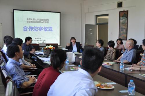 经过深入交流与探讨,为了更好地促进双方有效互益合作,推动双方在教育、研究以及相关领域的学术文化交流,清史所与佛莱堡大学人文学院决定建立正式互助合作关系,在共同举办学术会议、进行联合研究、师生互访、交换出版物等方面达成了初步一致意向,并签订了合作协议。