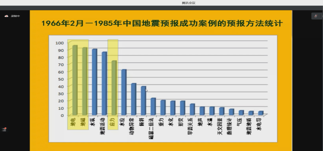 讲座共分为四个部分。在第一部分中,高老师首先介绍了关于地震的史料汇编问题,随后对邢台地震、唐山地震以及汶川地震等地震形势进行分析;最后对当时在地震预测方面遇到的难题进行了阐述,包括缺人才、缺经费、缺仪器、缺资料、缺案例、缺网络等。