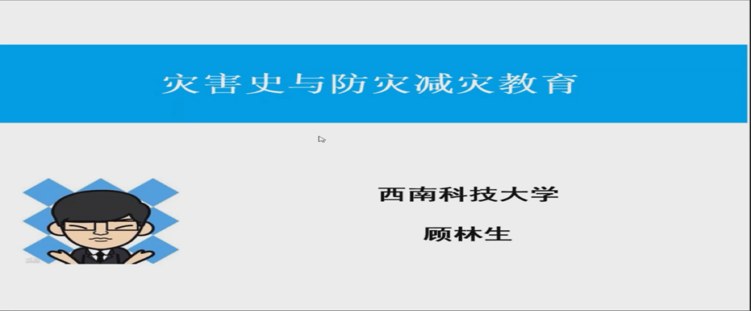 第四位作报告的学员是来自西南科技大学的顾林生老师,报告题目为《灾害史与防灾减灾教育》(见图15),报告主要分为三部分。