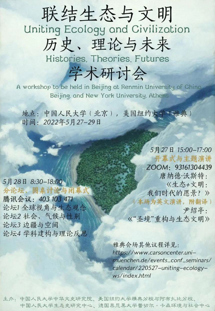 Co-Sponsored by the China Institute for Advanced Studies in the Humanities, Center for Ecological History, Renmin University of China, Beijing, the Rachel Carson Center for Environment and Society, Munich, and New York University, Athens and Abu Dhabi