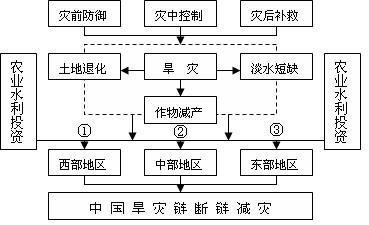 基于我国区域经济发展差异,针对我国旱灾链发生时空特征,坚持以防为主,防抗救相结合的灾害管理指导方针,从人为可控因素--农业水利投资入手,提出我国旱灾链断链减灾模式(见下图),以期尽可能的防止旱灾链的发生,最大限度地减轻旱灾链对经济社会所造成的损失,最终实现旱灾链系统的科学化管理目标。