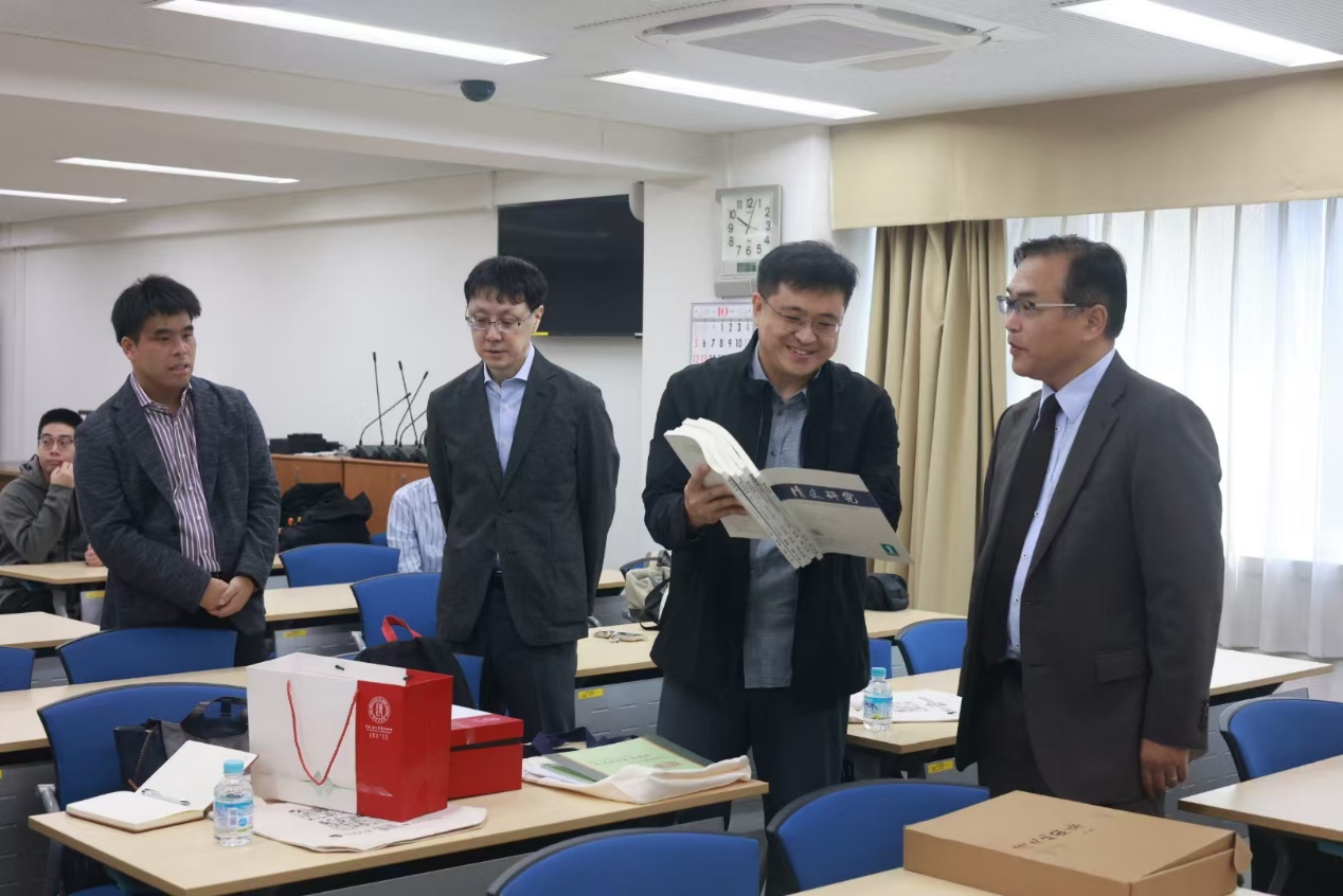 东洋文化研究所所长中岛隆博教授、东亚研究部门教授小寺敦、副教授梅村尚樹热情接待了中国人民大学师生一行。李光伟老师代表清史所向东洋文化研究所赠送新近出版的标志性学术成果《清史地图集》(华林甫主编),以及学术期刊《清史研究》等,双方就长效互访机制进行交流探讨。座谈会后,师生一行走入东洋文化研究所图书馆,近距离接触不同年代、不同地域的馆藏文献。