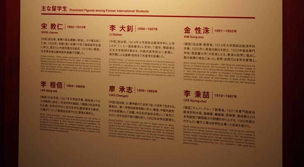 (早稻田大学历史馆对宋教仁、李大钊等“主要留学生”的介绍)