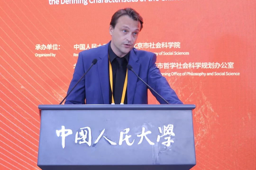 王轶在致辞中热情欢迎海内外学者莅临,介绍了中国人民大学围绕深入阐释中华文明突出特性的时代价值在相关领域的工作进展。他表示,中华文明是中华民族独特的精神标识,具有丰富的时代价值与深厚内涵。中国人民大学将与全世界的同行一道加强文明研究,为人类文明新形态实践提供有力的理论支撑。